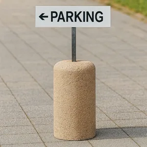 BORNES Bornes dissuasives anti-stationnement Borne en béton support signalétique (595) Bornes de protection pour piétons. Forme cylindrique et bombée en ...